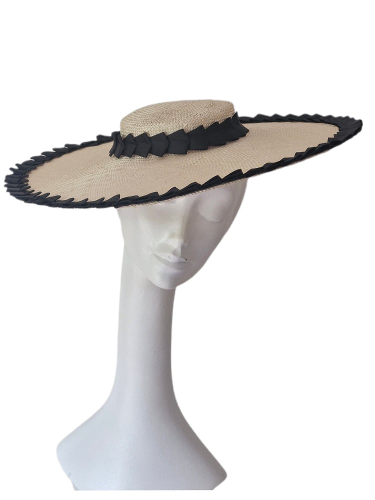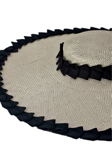 Straw Bergere hat with pleated ribbon trim